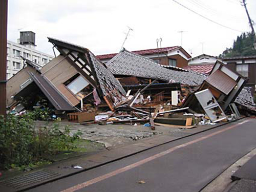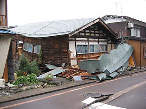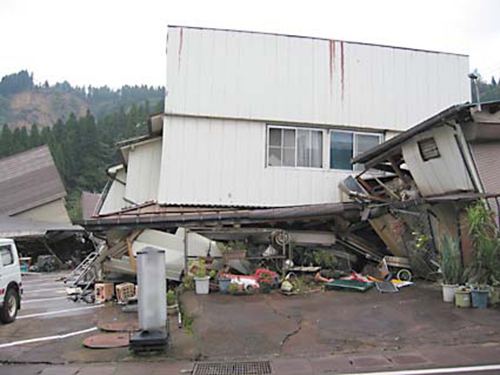 川口町市街部のおける建物被害(木造2階建て,1階店舗構造)