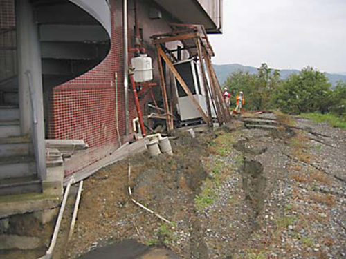 川口町温泉施設の傾き(この棟のみ若干傾いている)