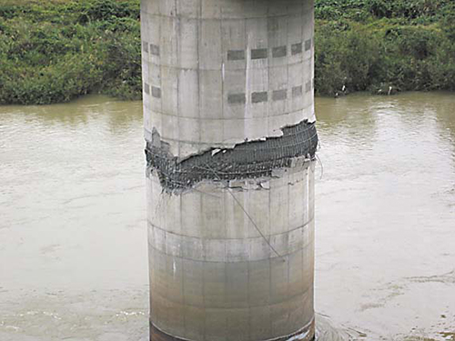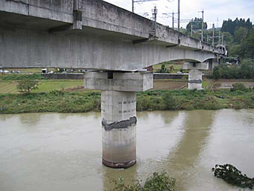 和南津・魚野川の新幹線橋脚の損傷(コンクリート施工ジョイント部の鉄筋のはらみ)