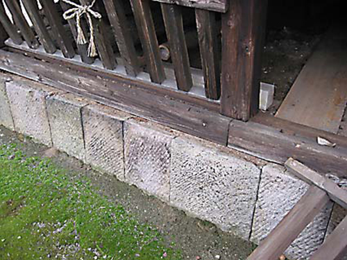 小千谷市平成2丁目 船岡山北側 慈眼寺船岡観世音院の柱基礎部分 礎石からずれている