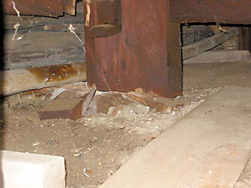 基礎に差し込んであった部分が抜け上がって,基礎がずれて”着地”した状態