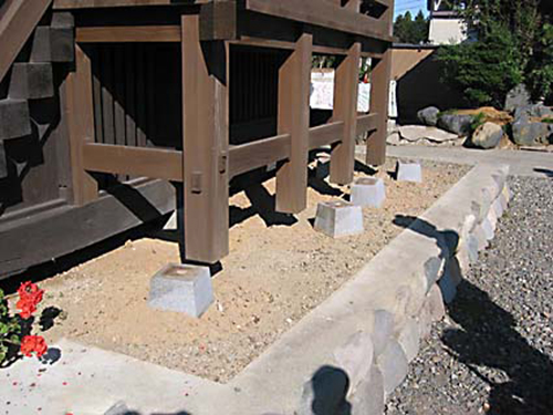 小千谷市本町1丁目 證光院でのお堂部分の基礎のずれ