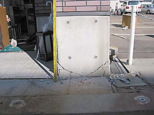 鉄筋コンクリート3F造の基礎部の破断(鉄筋は丸棒タイプ)